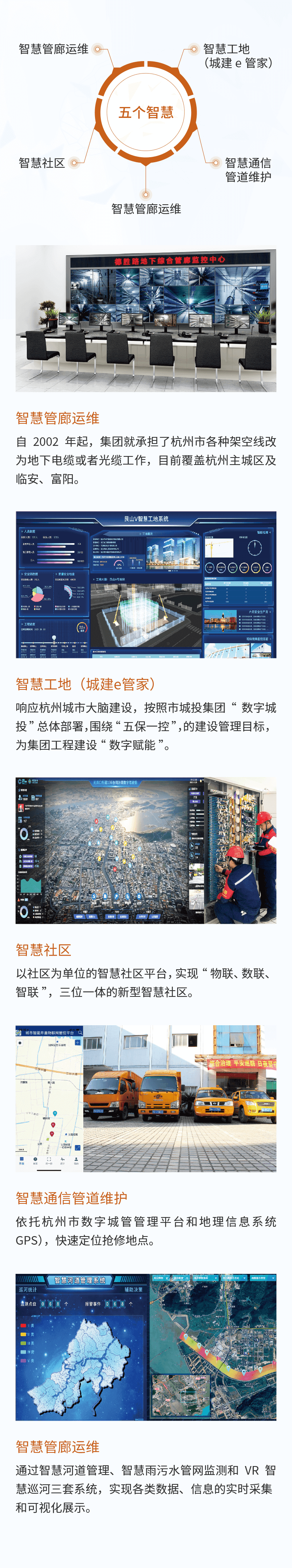 自2002年起,集團就承擔(dān)了杭州市各種架空線改為地下電纜或者光纜工作,目前覆蓋杭州主城區(qū)及臨安、富陽。